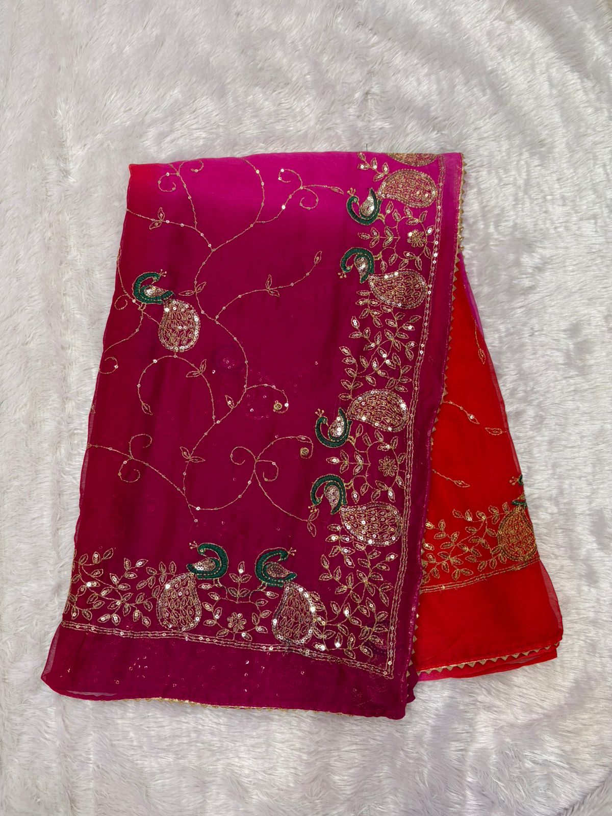 β¨ Party-Wear Two-Dye Shimmer Chiffon β Soft, flowing fabric with a beautiful dual-shade effect.