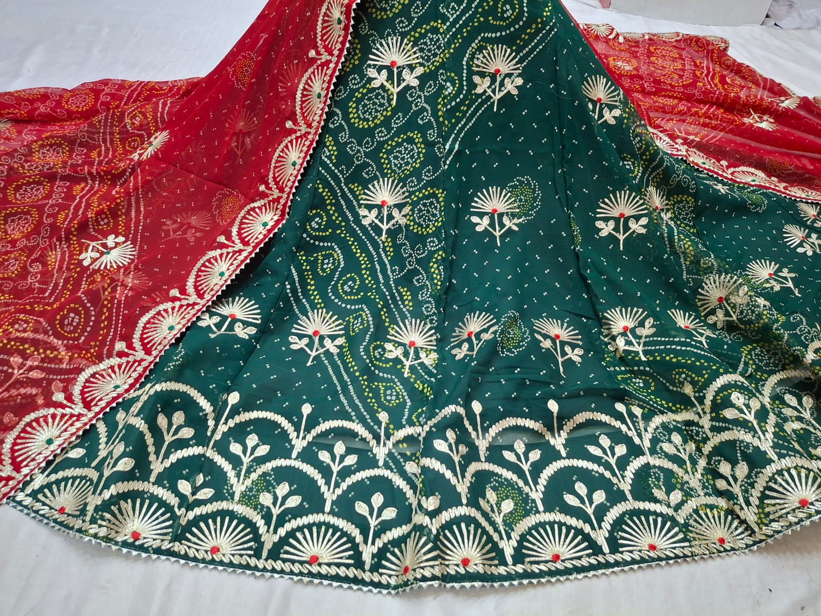 ✨ Pure Georgette Bandhej Lehenga Set with Gota Patti Work ✨