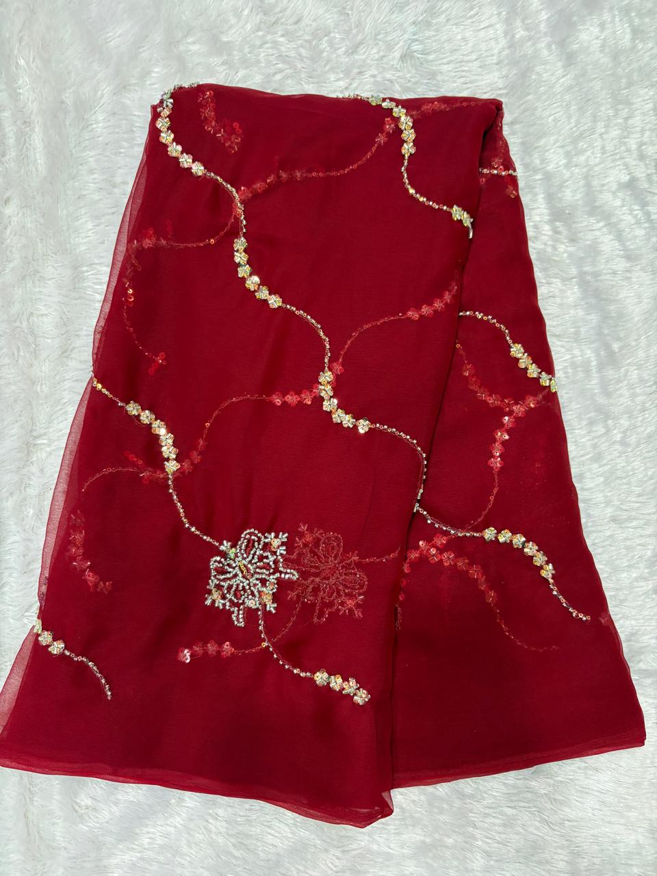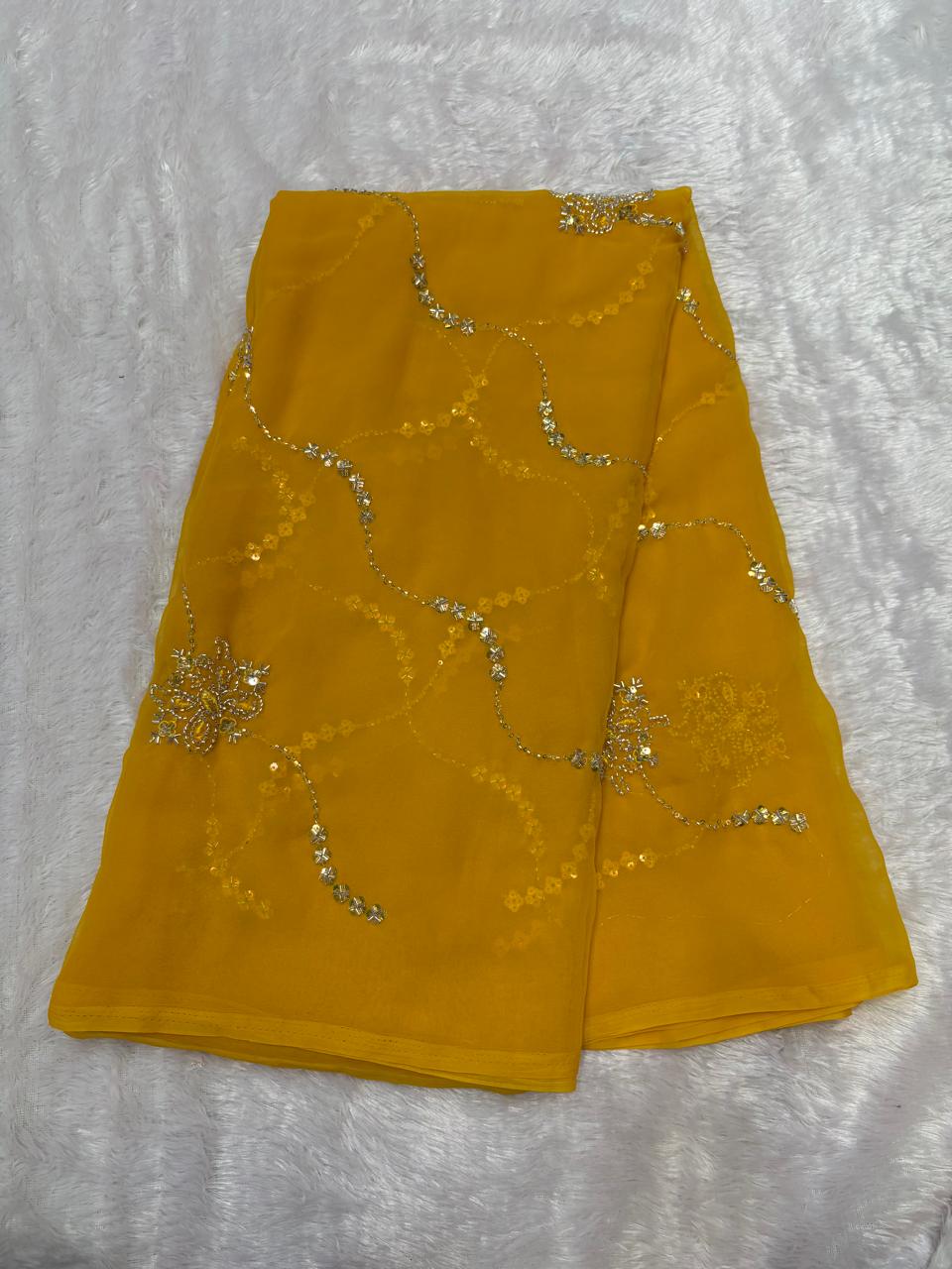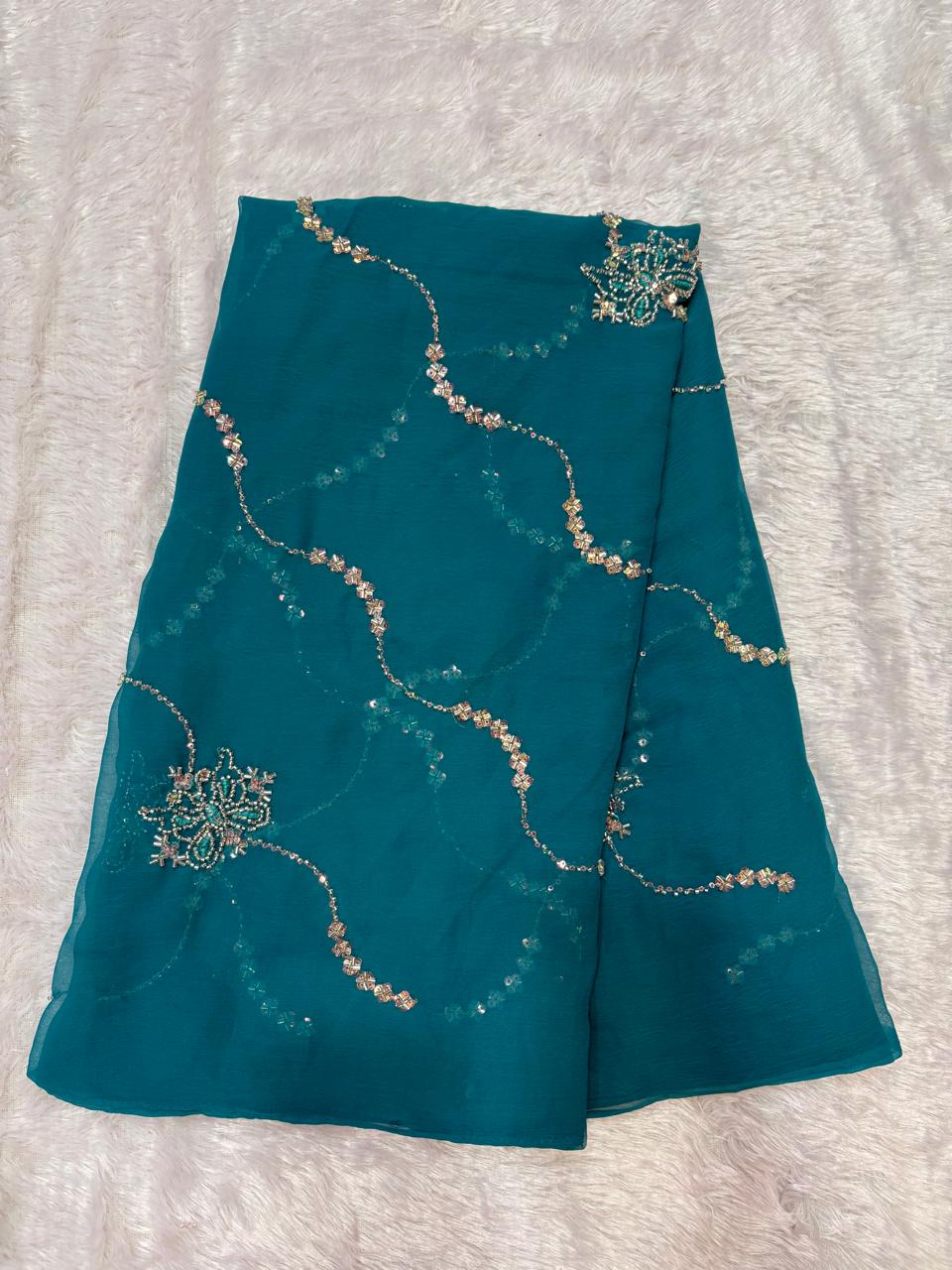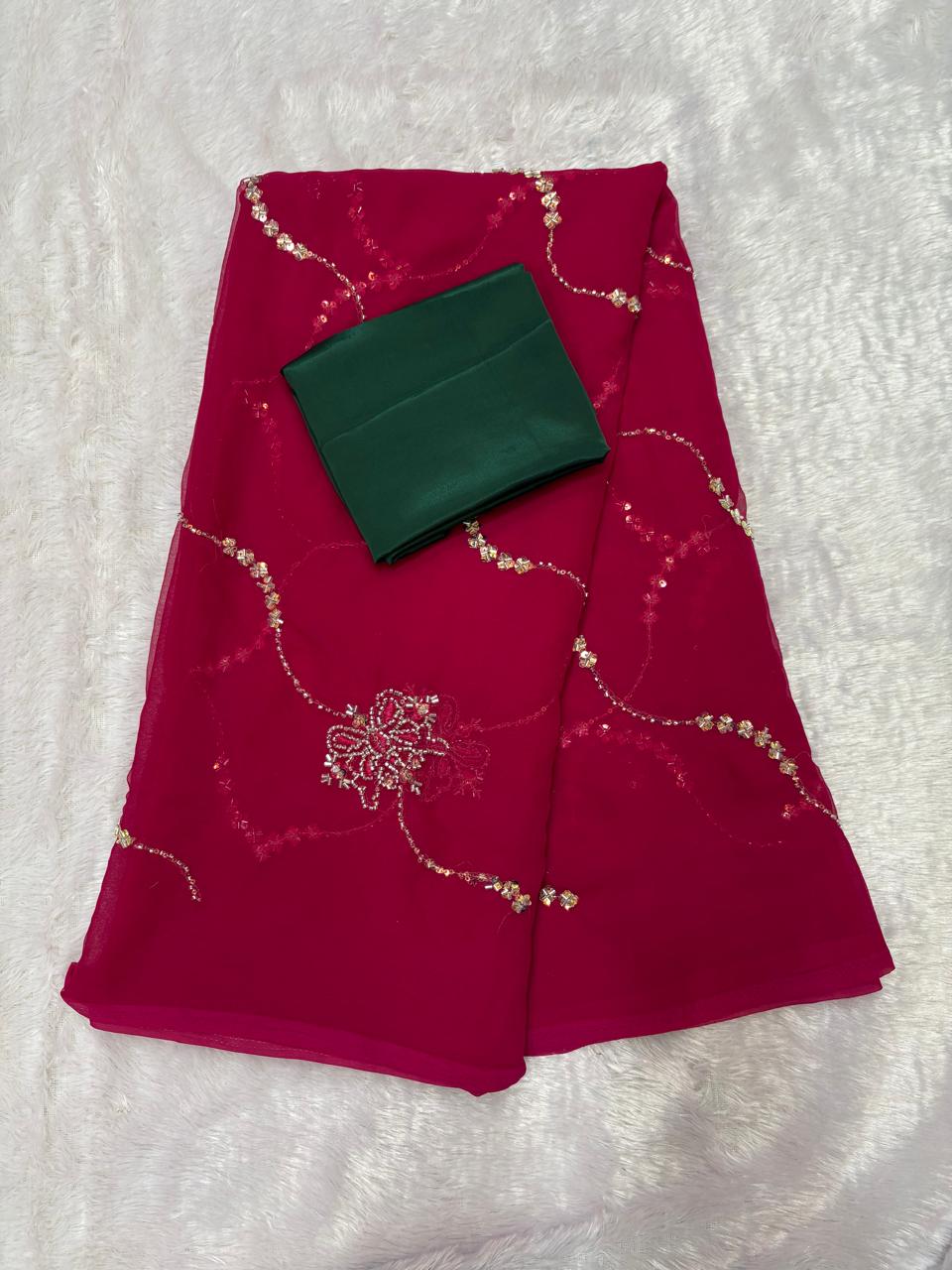 β¨ Royal Georgette Fabric π Aaritaari & Cut Dana Work πWith Blouse β¨