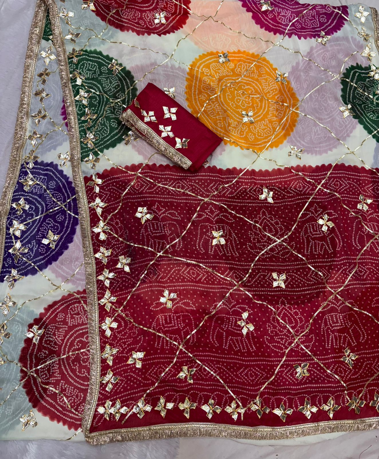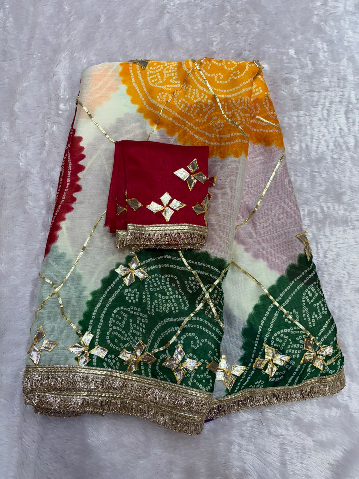 ✨ Trending Multi-Colour ✨ Royal Georgette Fabric ✨ Kachi Gota Work 💎 With Blouse ✨