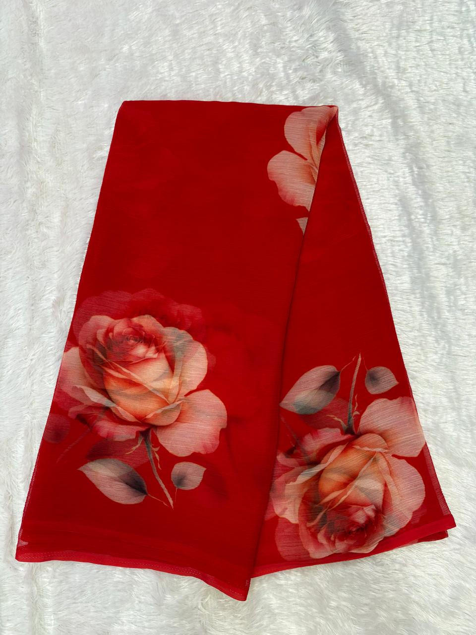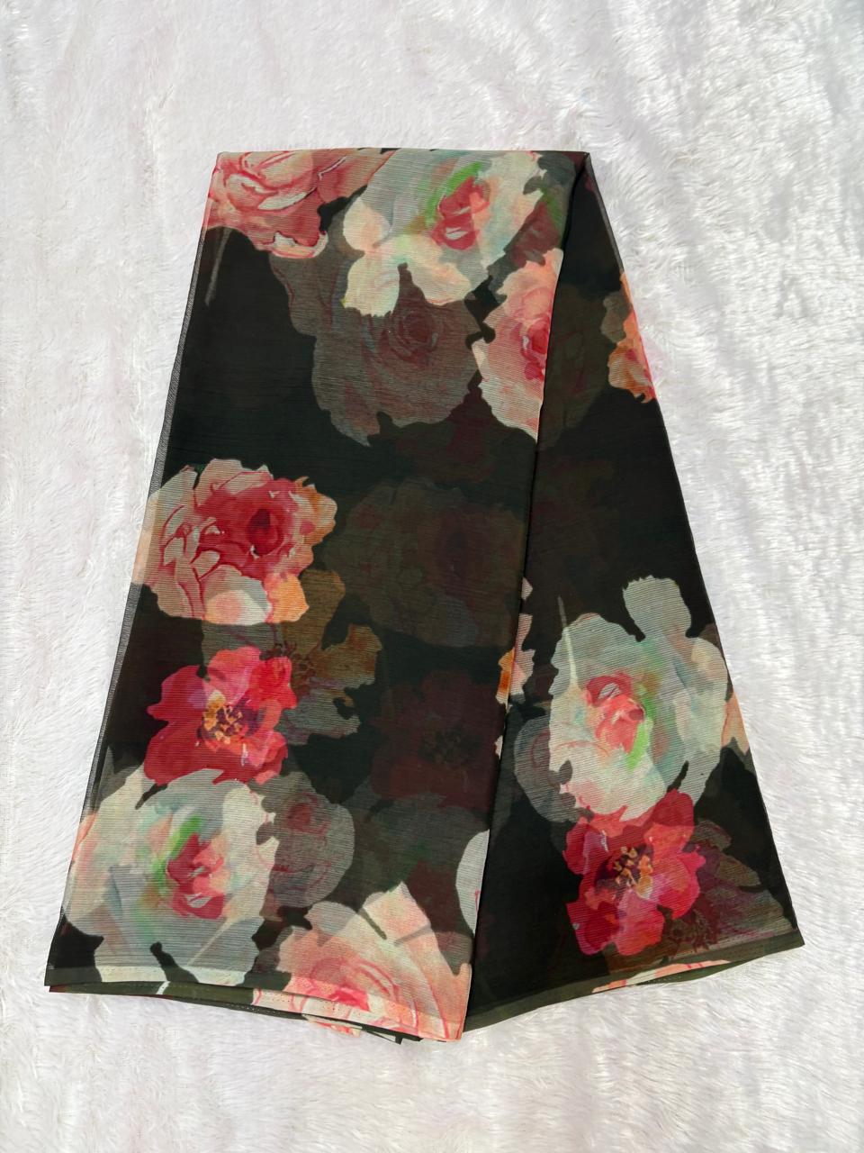 - ๐ธ Elegant Rajputi Floral Print Saree: Beautiful rose pattern for a timeless and graceful look.