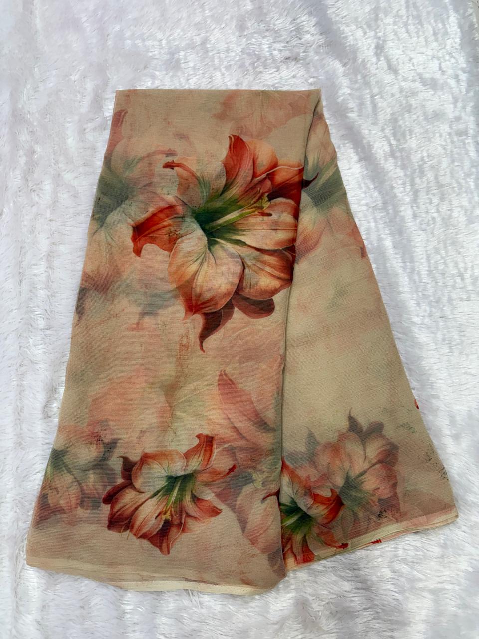 ๐ธ Elegant Rajputi Floral Print Saree ๐ Royal Apple Chiffon Fabric ๐Without Blouse ๐ธ