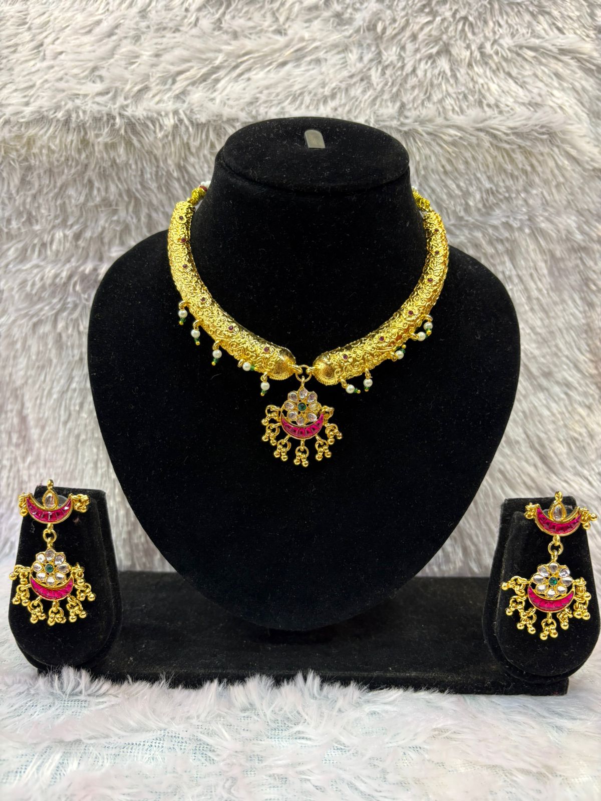 💎 Traditional Hasli Design – Classic Rajasthani style necklace with beautiful center pendant.