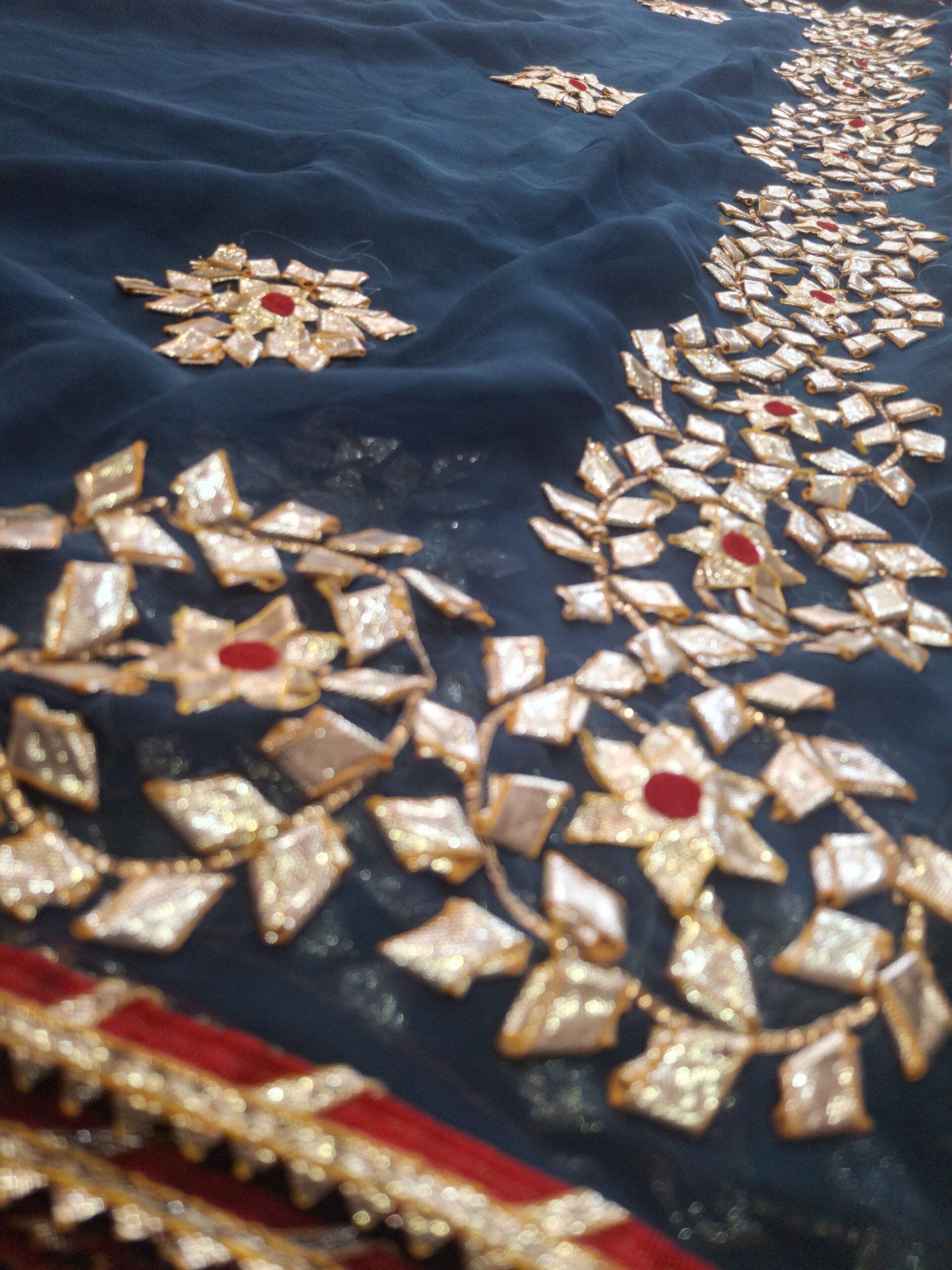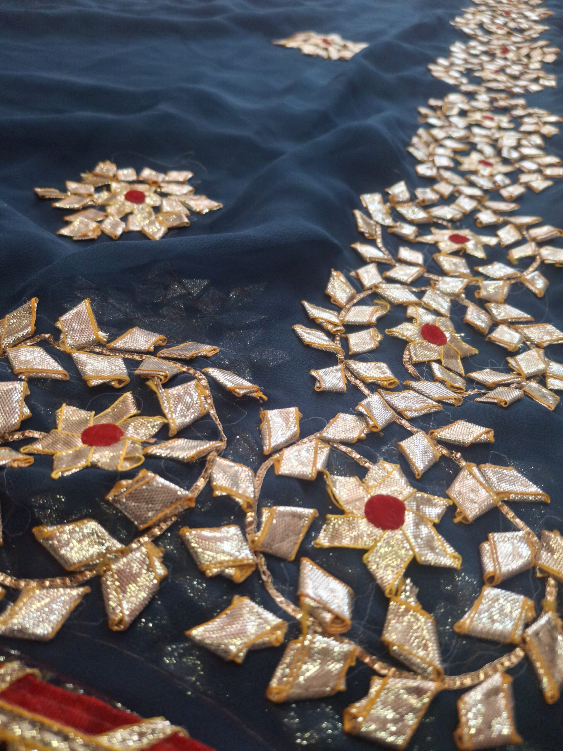 Step into the spotlight with our exquisite Kachi Gota Work Party Wear Saree, crafted from luxurious georgette material.