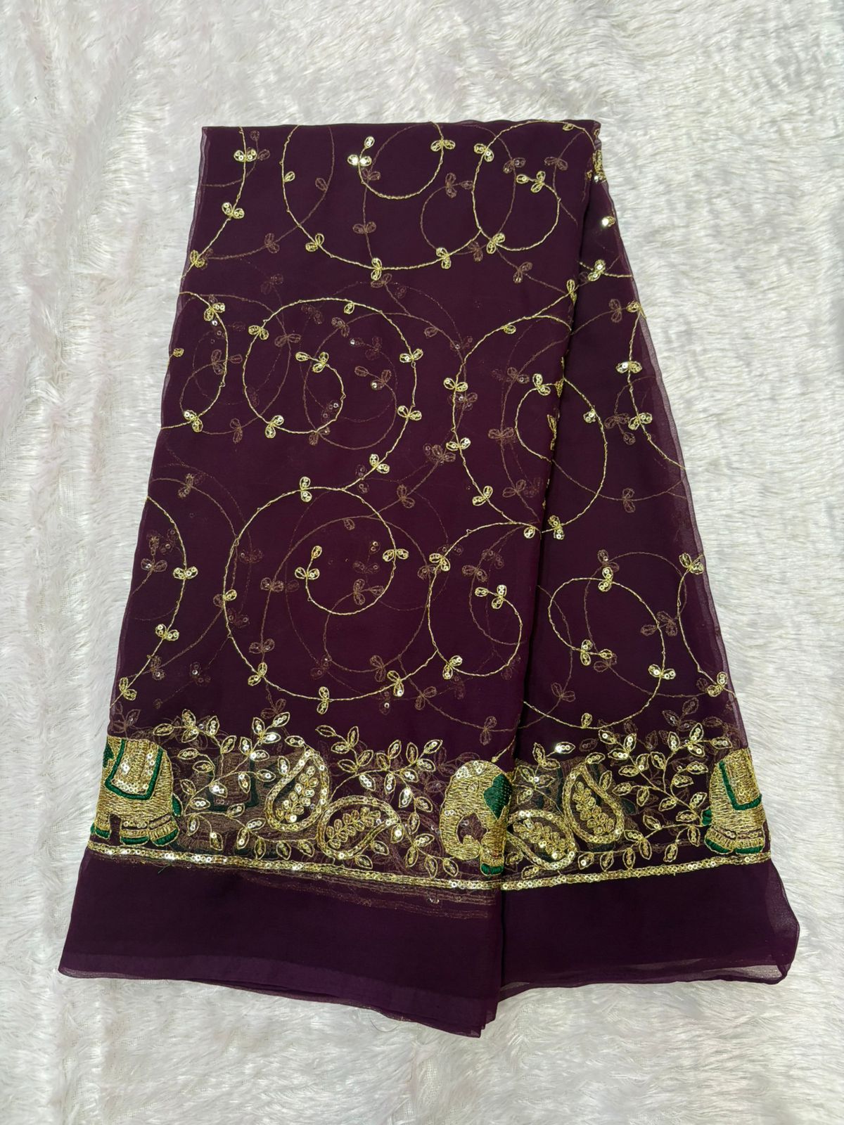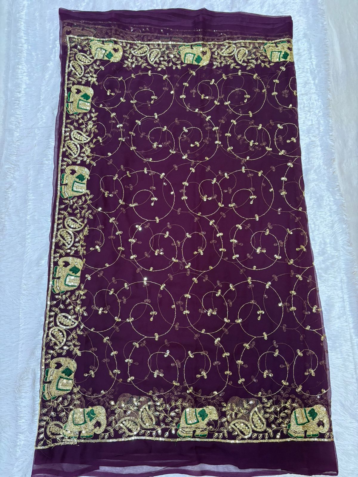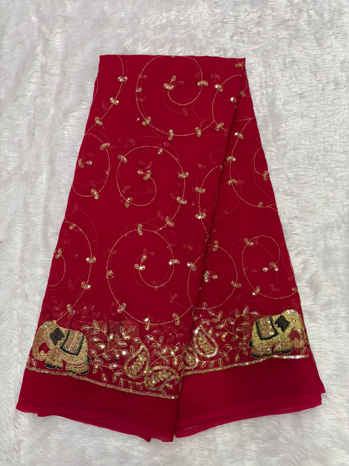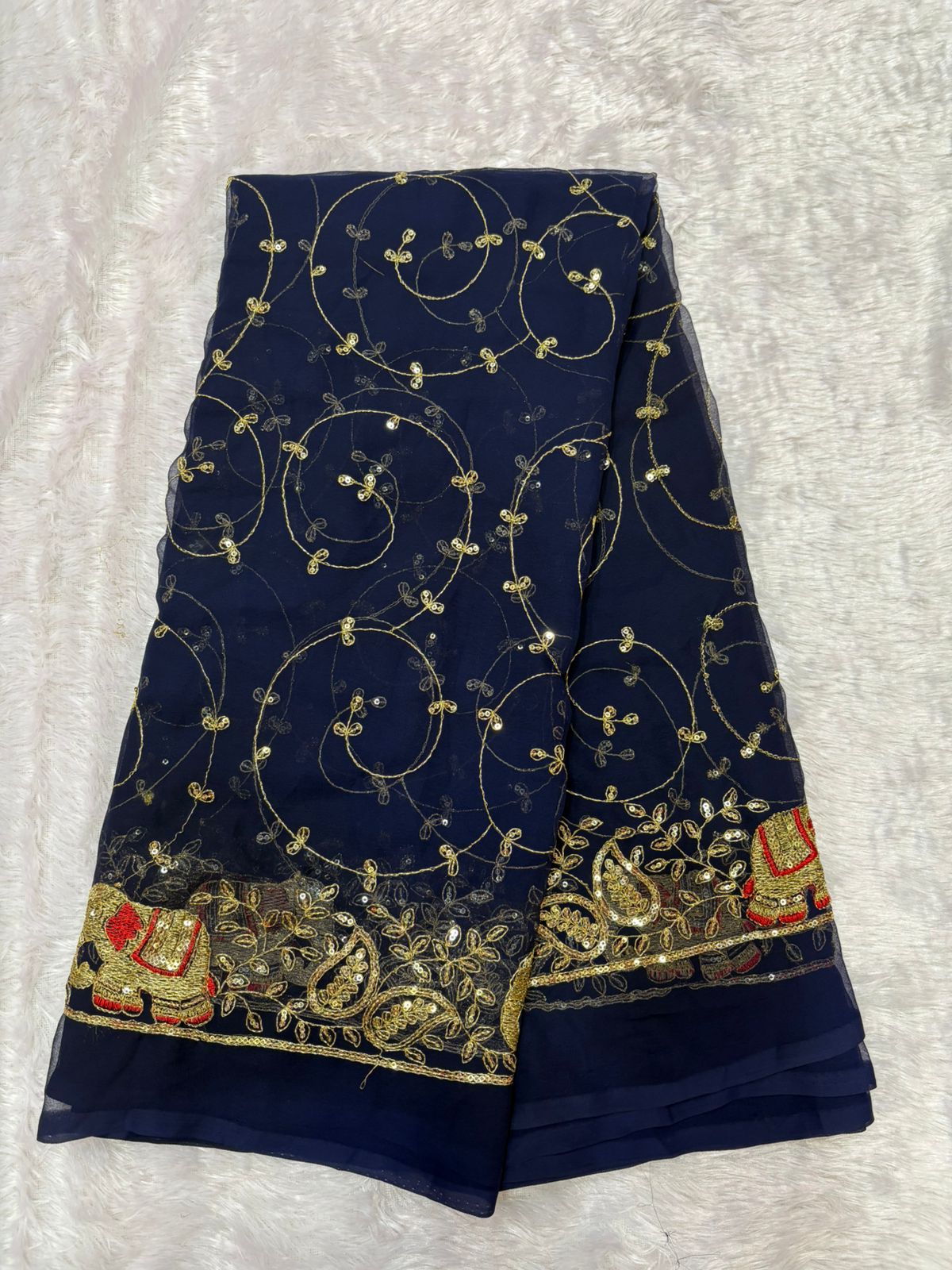 Material: Crafted from premium Royal Georgette, known for its beautiful drape, durability, and rich texture. This fabric maintains a royal flow and sophisticated appearance.