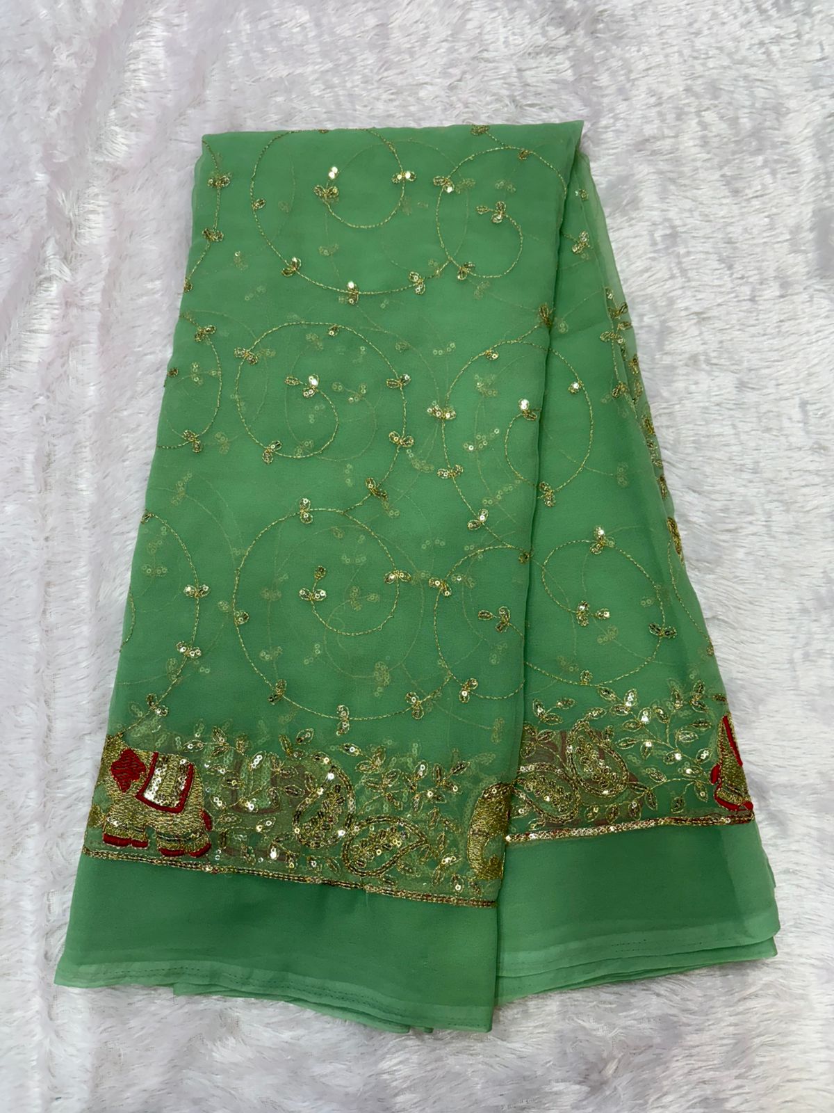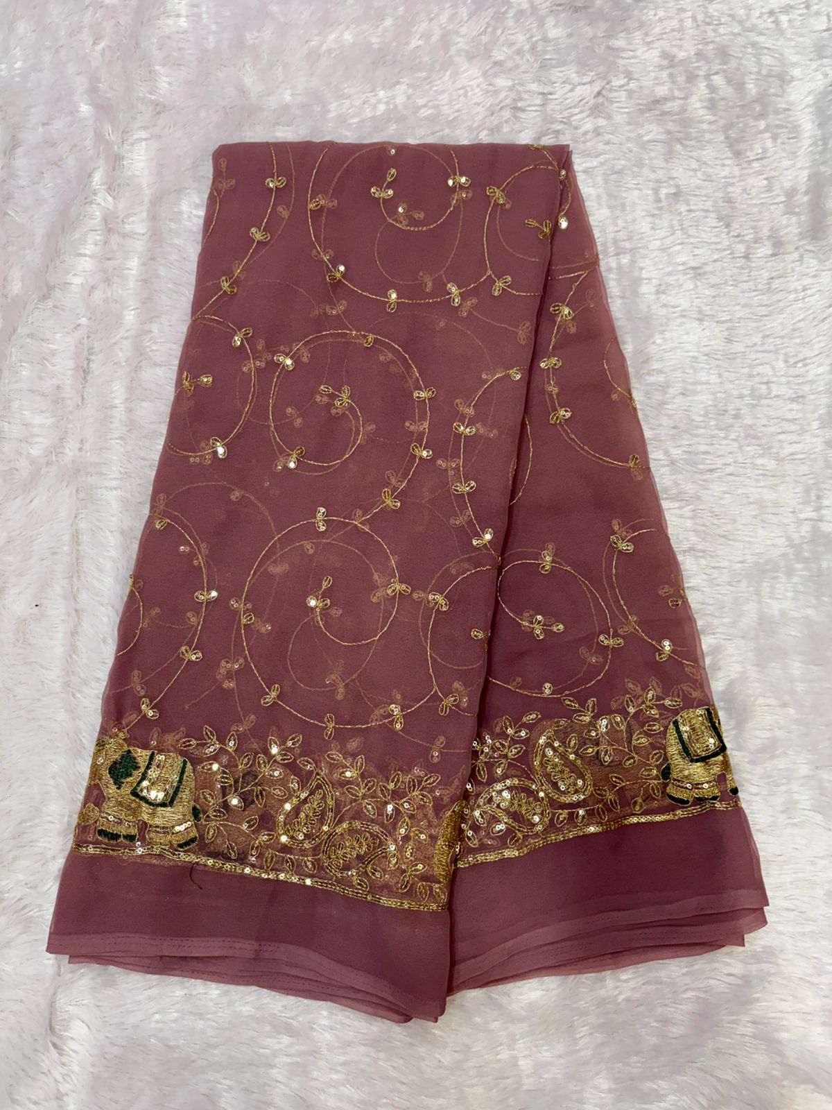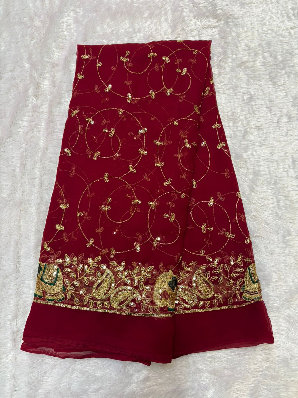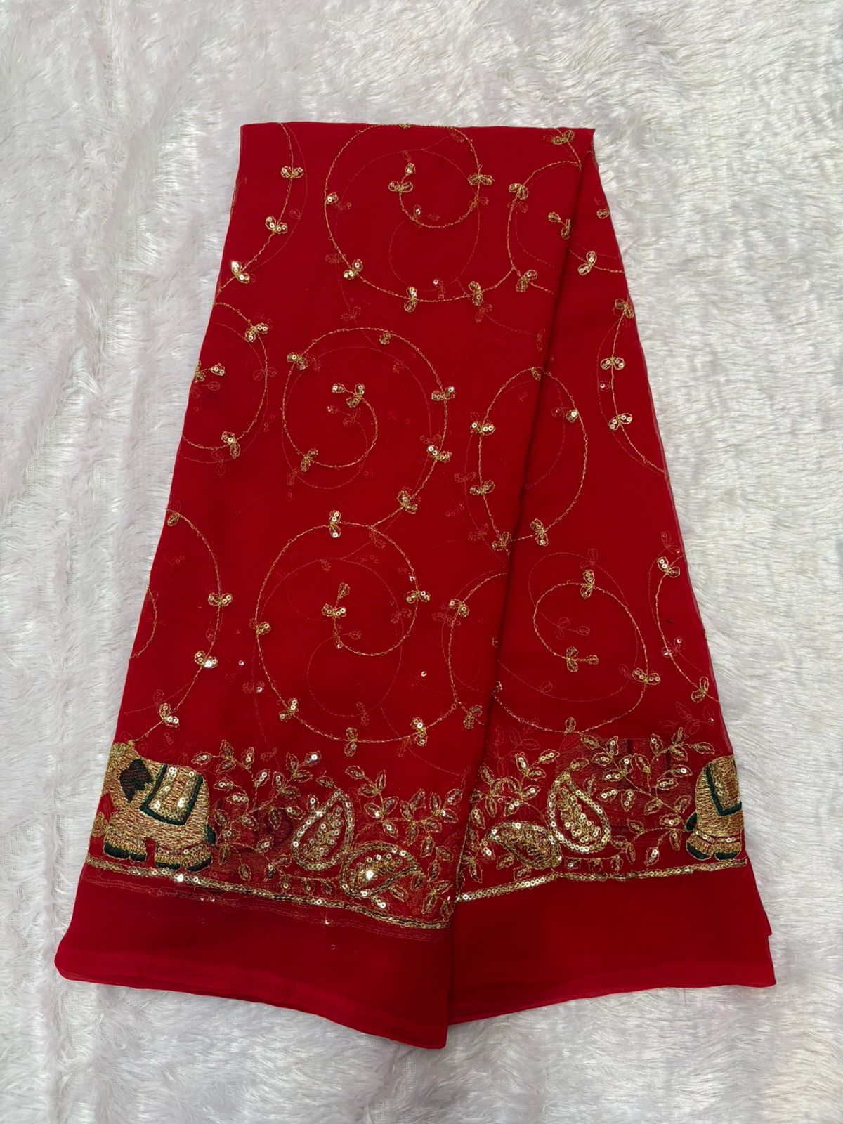 Material: Crafted from premium Royal Georgette, known for its beautiful drape, durability, and rich texture. This fabric maintains a royal flow and sophisticated appearance.