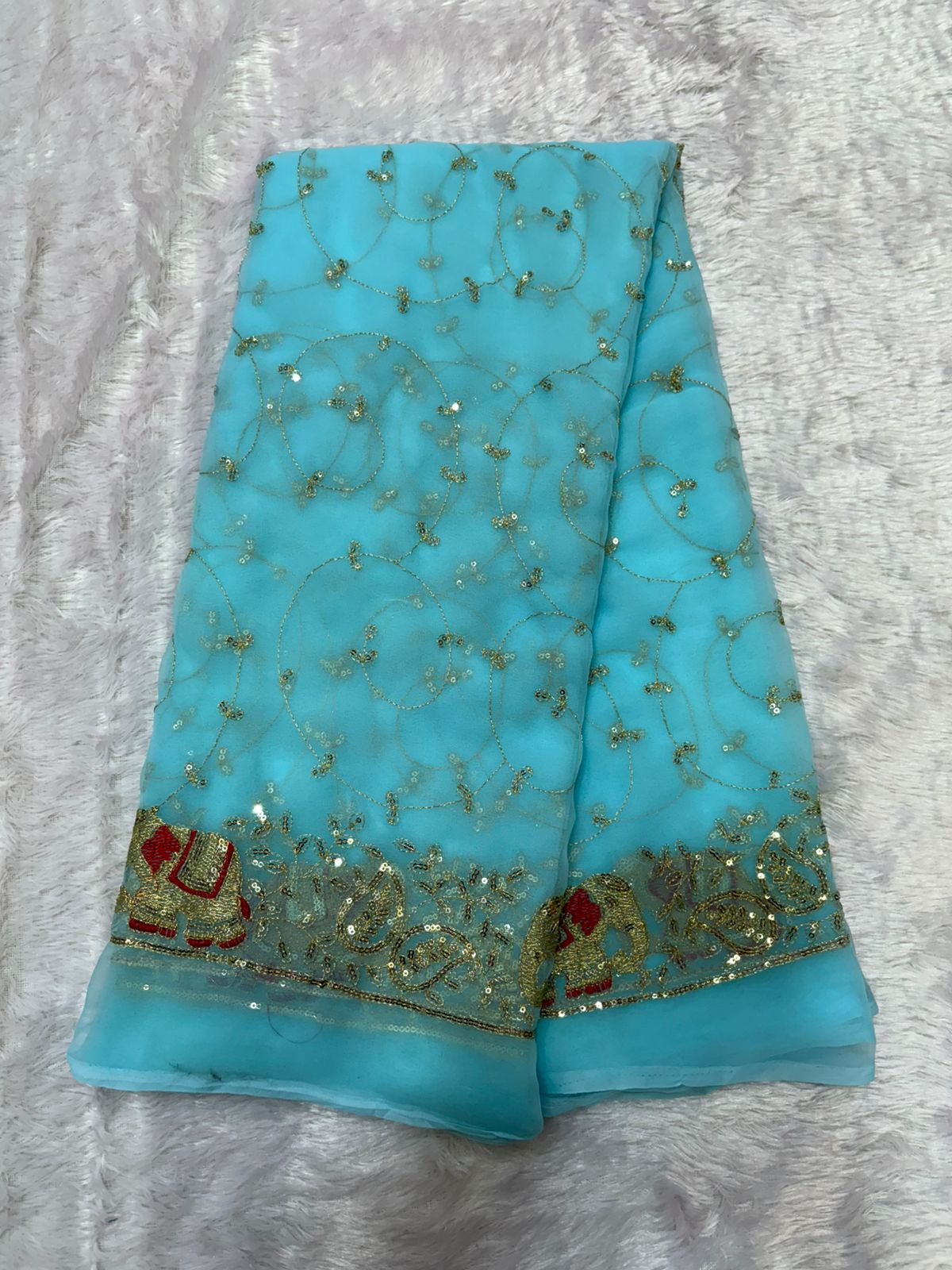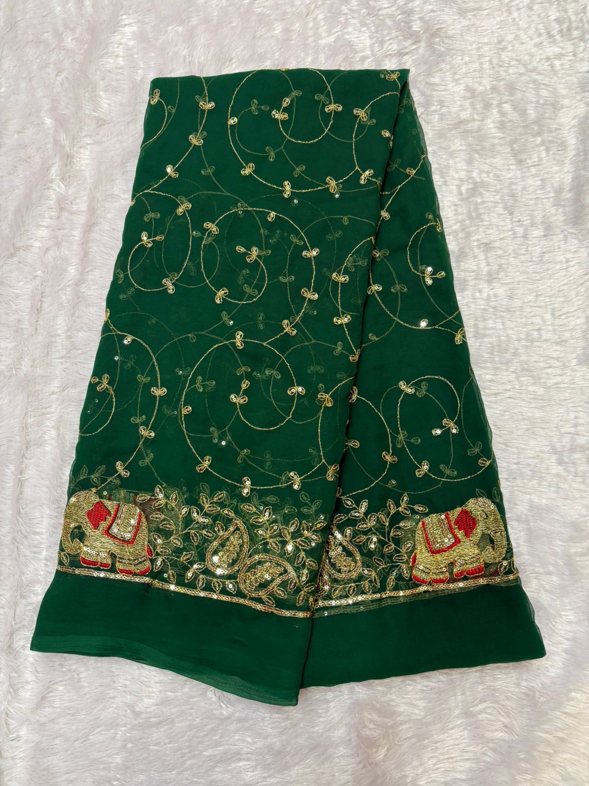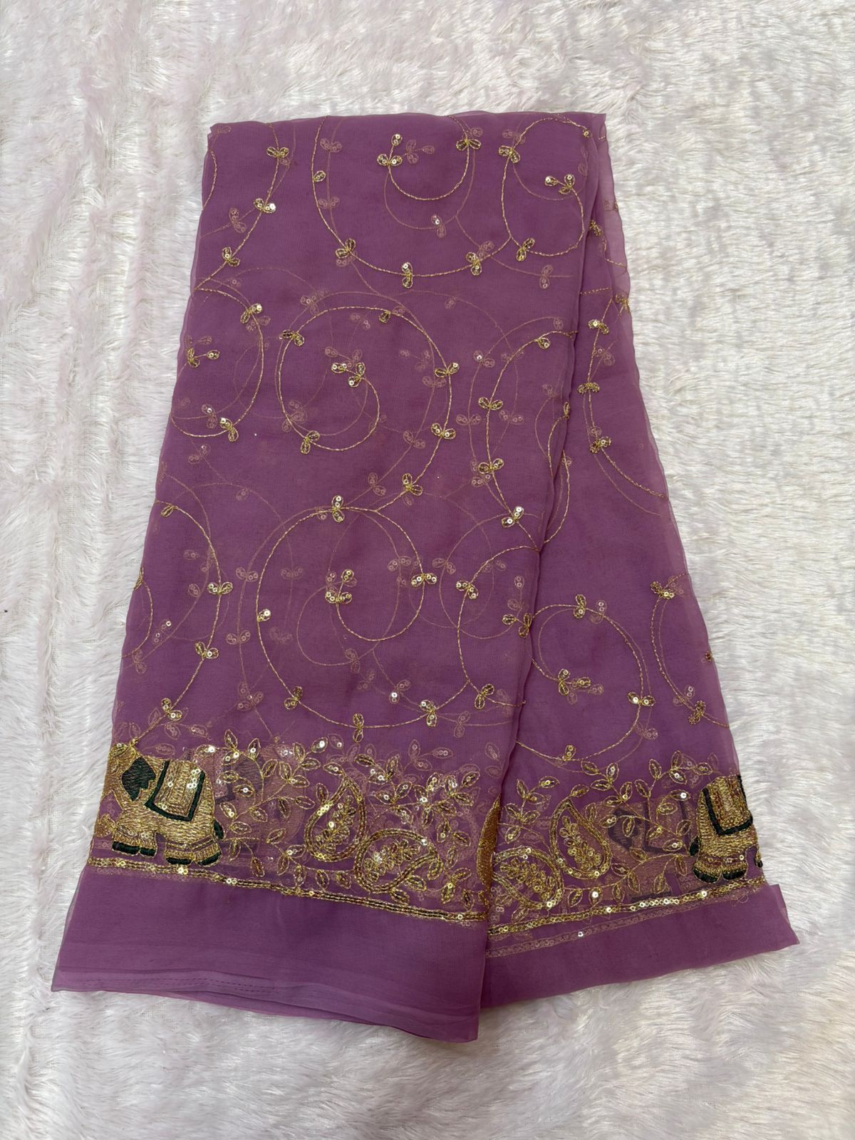 Luxurious Royal Georgette Saree with All-Over Elephant Motif Jaal Work
