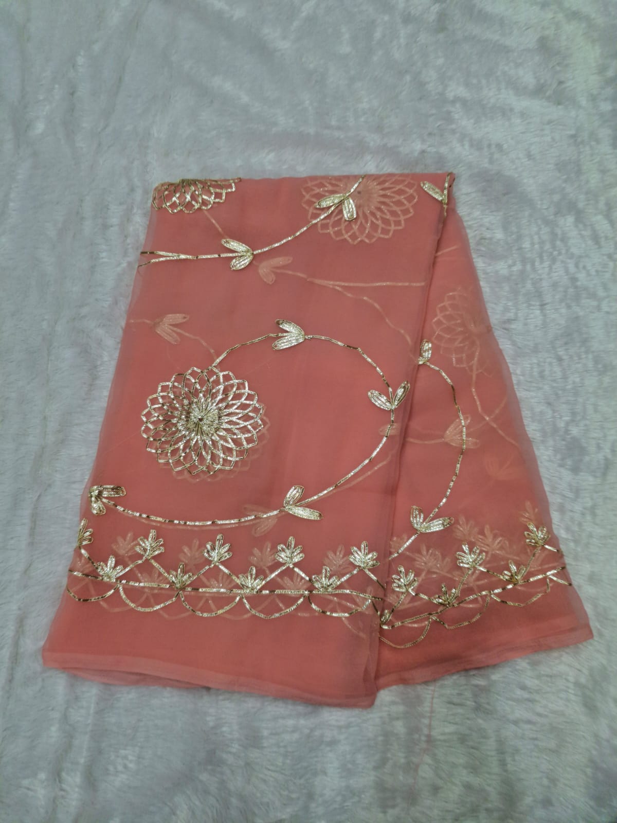 | Party Wear Royal Georgette Fabric Saree |Kachi Gota Work |
