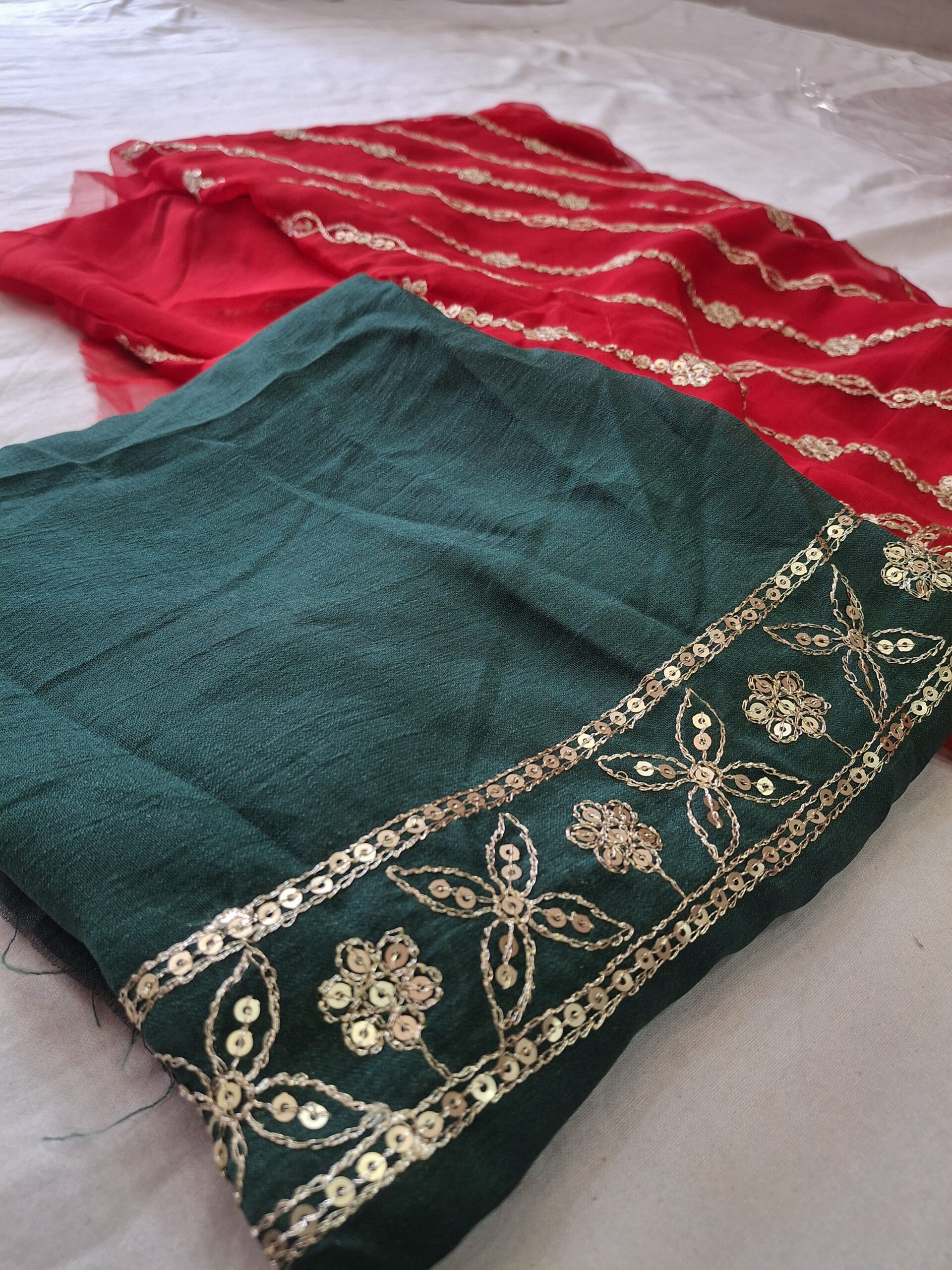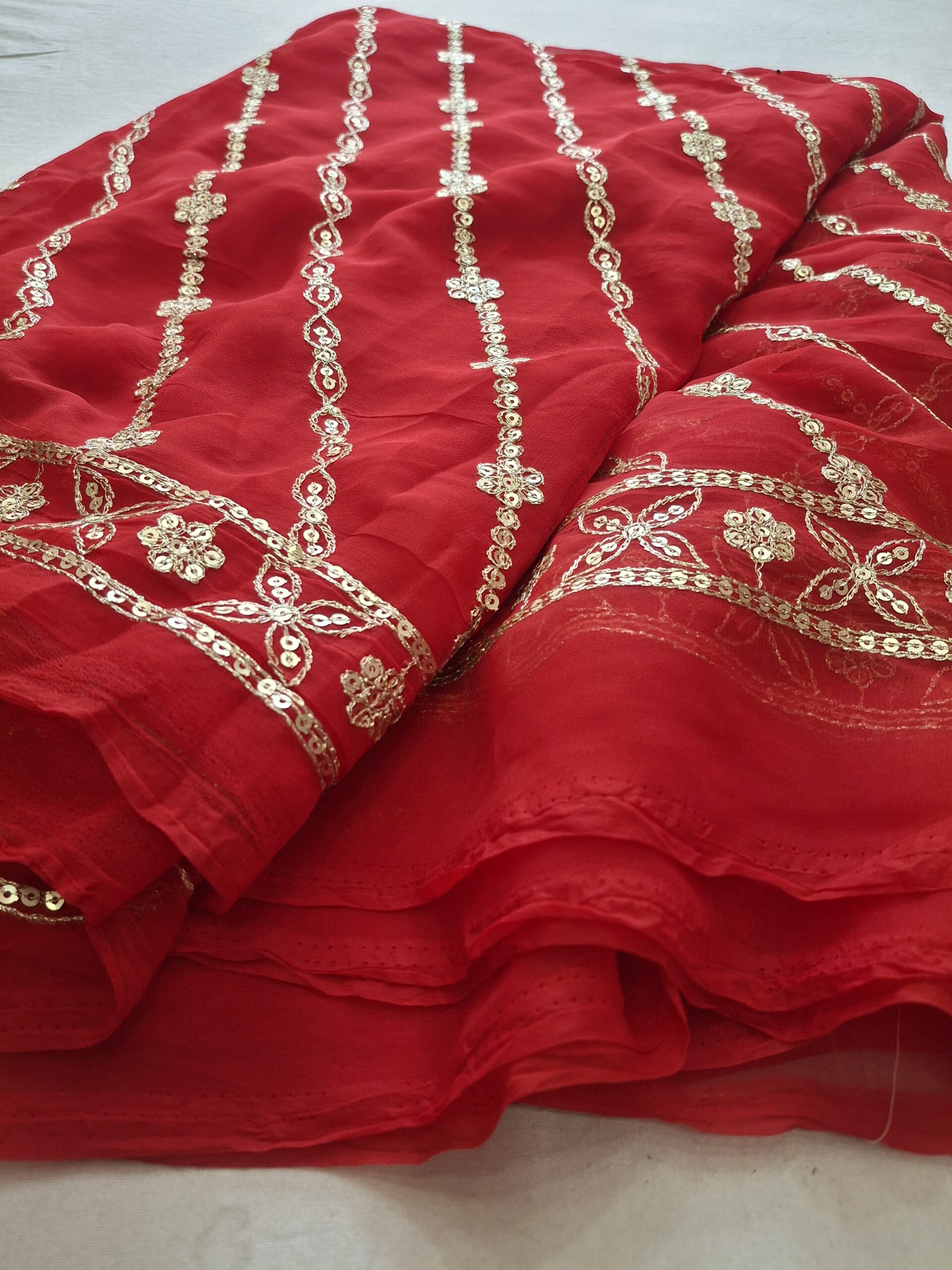Embrace the grandeur of royal Rajasthan with this exquisite Rajwadi Saree, featuring intricate jaal work along the borders that showcase the fine craftsmanship synonymous with regal elegance. The saree is beautifully adorned with shimmering zari work, adding a luxurious touch of gold and silver threads that glisten with every movement. Crafted from rich, flowing fabric, this saree drapes gracefully, perfect for weddings, festivals, and grand celebrations. Included with a matching blouse, the ensemble offers a complete, sophisticated look that captures timeless tradition and majestic charm.