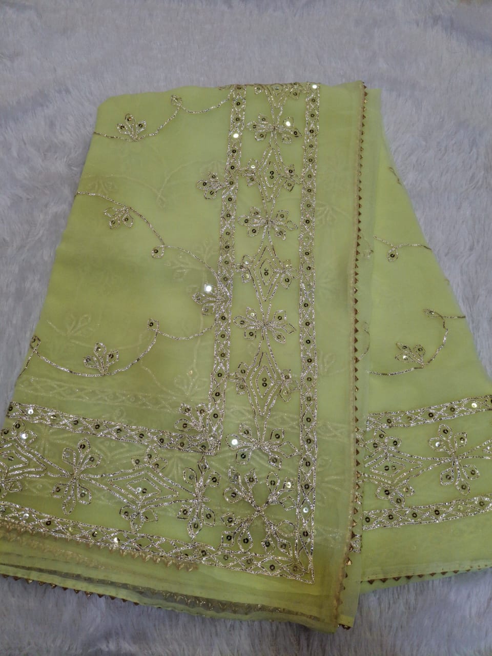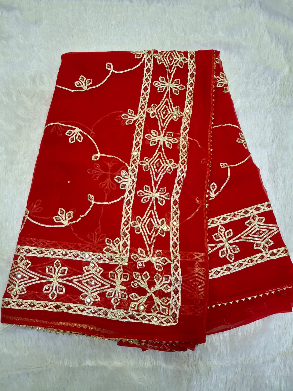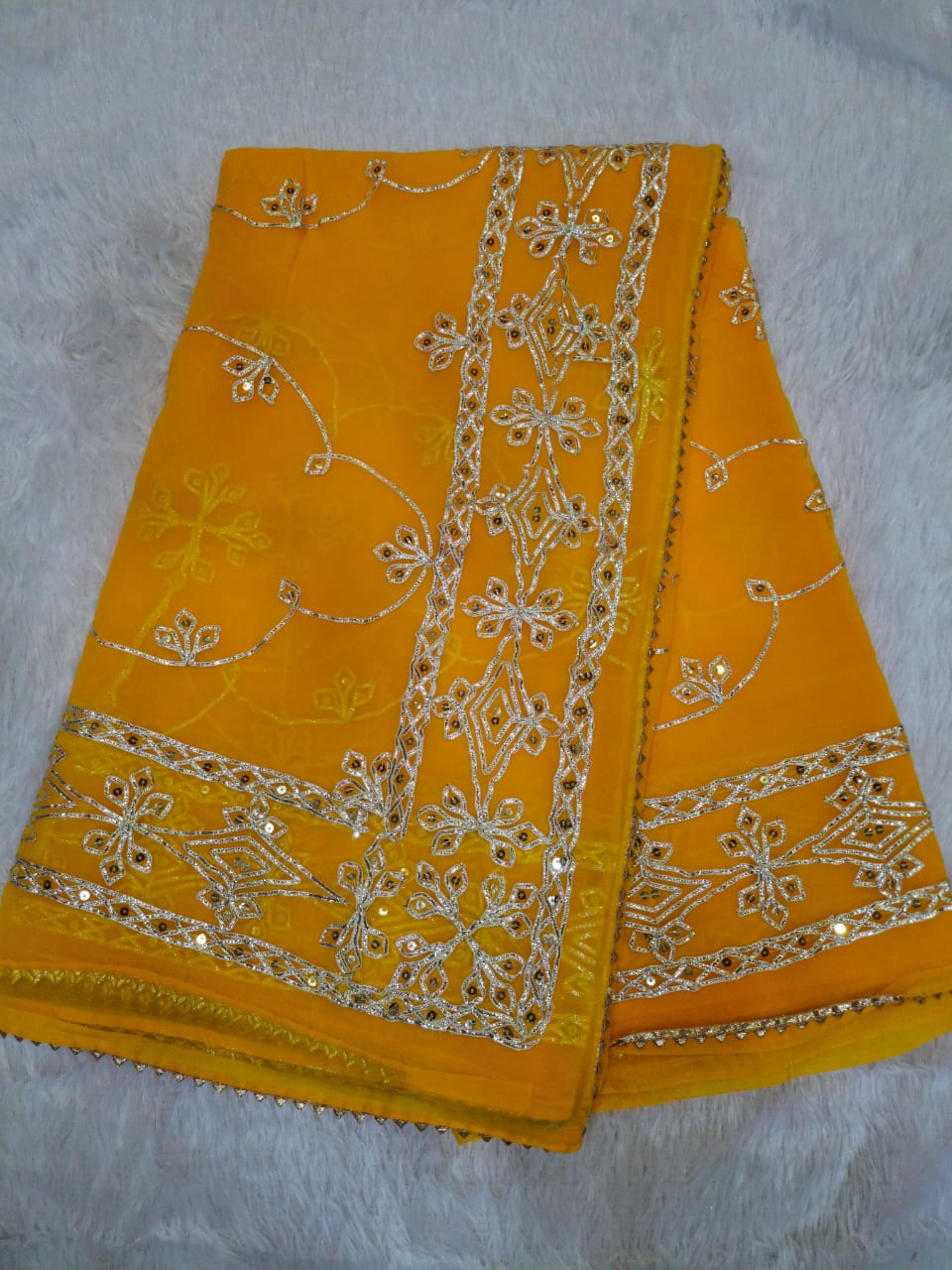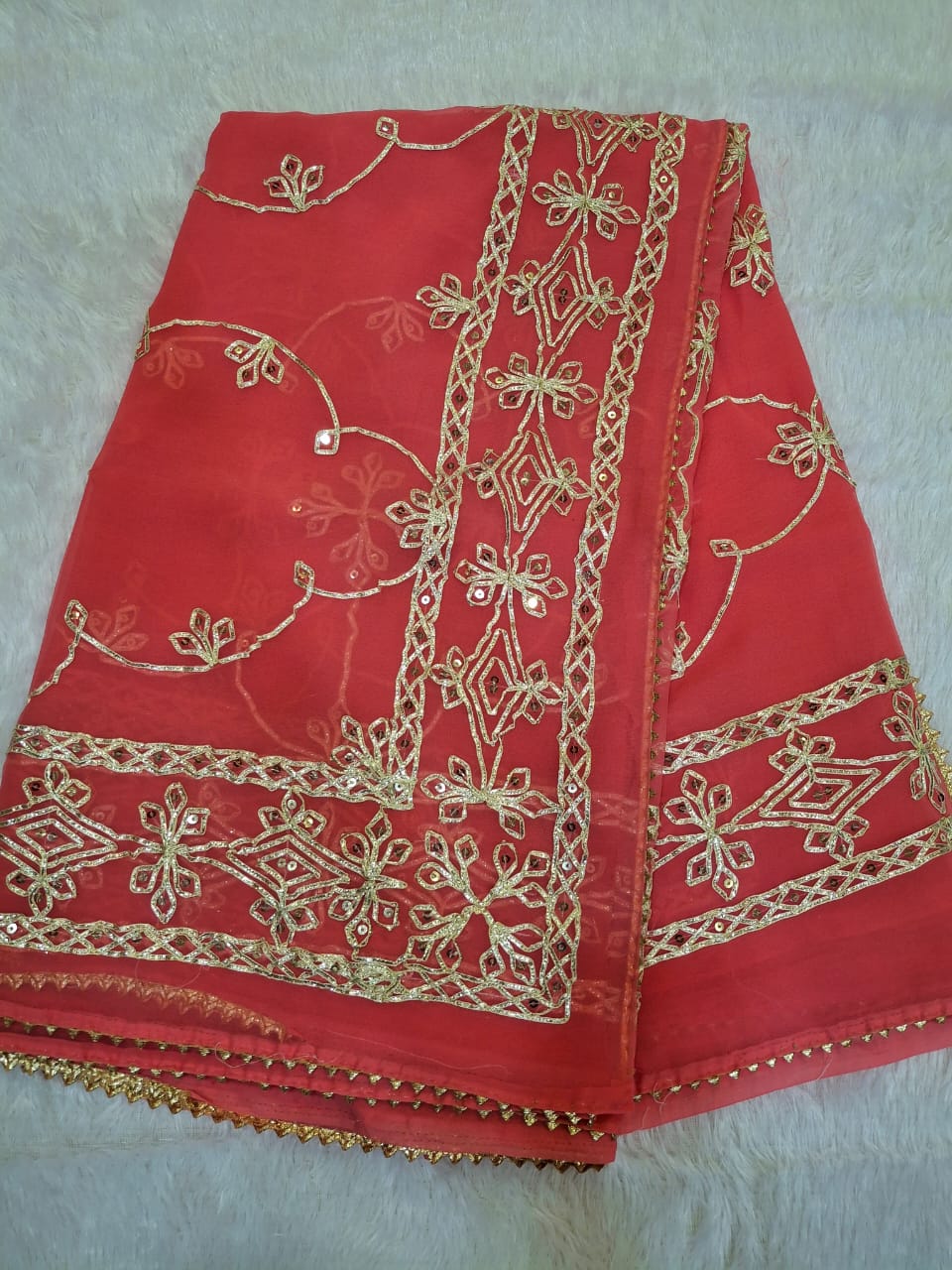 Royal Georgette Gota and Sequence Work Party Saree (With Blouse)